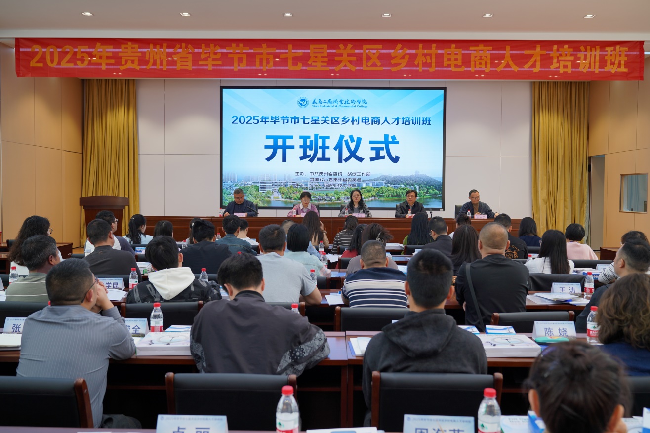 3月24日,2025年貴州省畢節(jié)市七星關(guān)區(qū)鄉(xiāng)村電商人才培訓(xùn)班在我校文美廳順利開班,此次培訓(xùn)班由中共貴州省委統(tǒng)一戰(zhàn)線工作部主辦,來自畢節(jié)市七星關(guān)區(qū)的43名鄉(xiāng)村電商從業(yè)人員代表參加培訓(xùn)。致公黨貴州省委秘書長、一級巡視員薛承夢、校黨委副書記葉斯源、繼續(xù)教育學(xué)院和創(chuàng)業(yè)學(xué)院相關(guān)負(fù)責(zé)人出席會議。